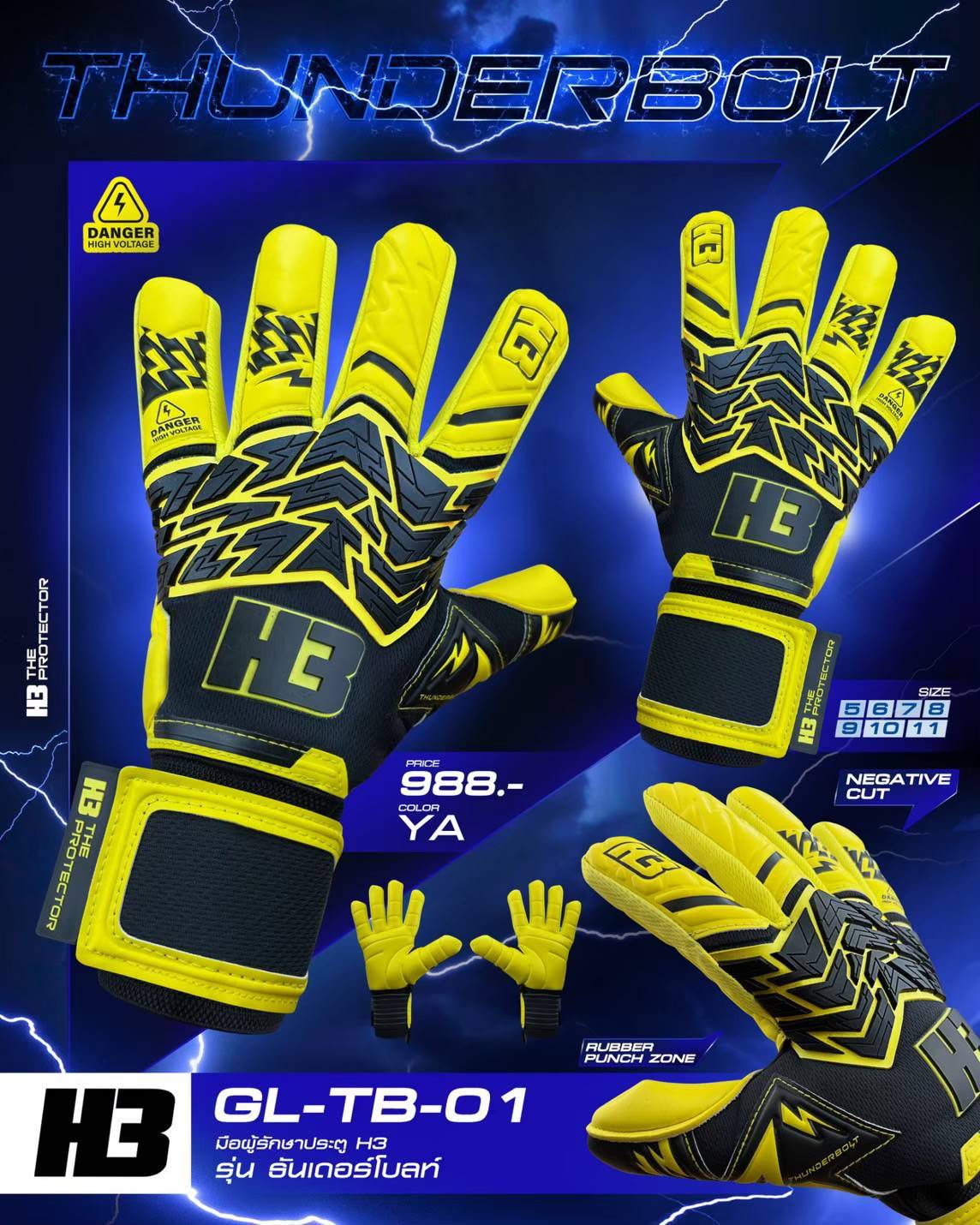 H3 ถุงมือรุ่น TUNDERBOLT Y ขนาด 9 สี เหลือง/ดำ